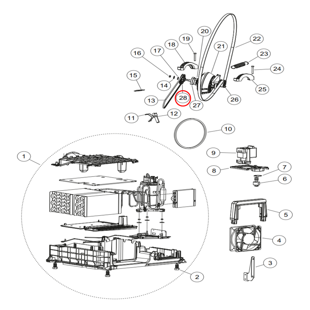 The H0180200146 Dryer Fan Belt Pulley is a key part of your Fisher & Paykel or Haier dryer's fan assembly. It is part number 28 on the diagram (2nd last photo), sourced from model DH8060P1 (93225-A).