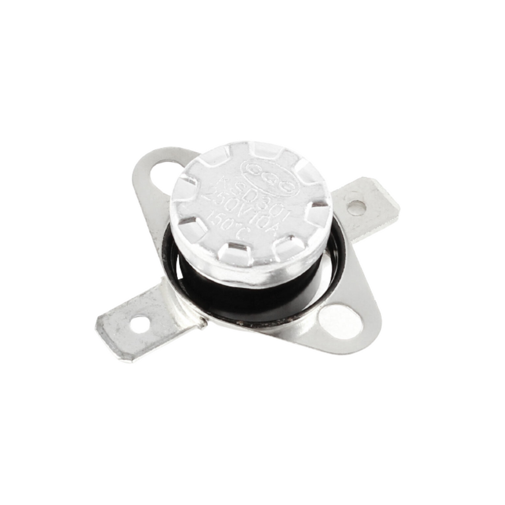 This thermostat remains closed until the surface temperature reaches 150°C, then the switch opens automatically.