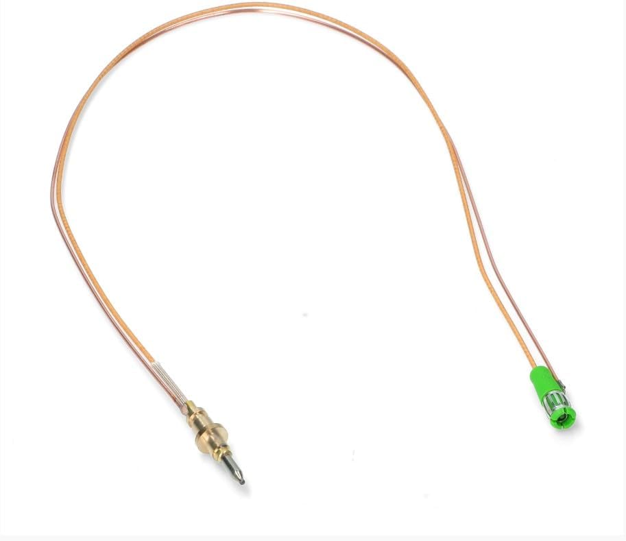 Replacement cooktop thermocouple (part no. 948650254) for Smeg gas cooktops. Measures 500 mm and suits back-left burner position. Designed to monitor flame presence and automatically cut off gas for safety.
