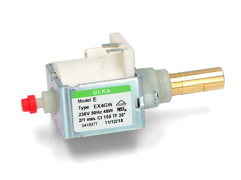 ULKA EX4 GW Coffee Machine Pump 48W 230V is designed for coffee machines and professional equipment requiring a reliable high-pressure vibration pump. This model features a brass outlet, built-in diode, and stable 48W performance suitable for commercial and domestic espresso machines.